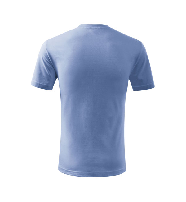 Koszulka dziecięca wysokiej jakości o niższej gramaturze ze szwami bocznymi. Wąska lamówka ze splotu żeberkowego. Węwnętrzna tylna część lamówki wykończona tkaną taśmą. Wzmocnienie na ramionach. Świetnie nadaje się pod haft i nadruk.