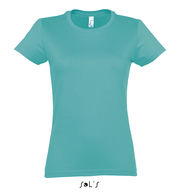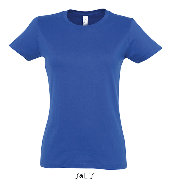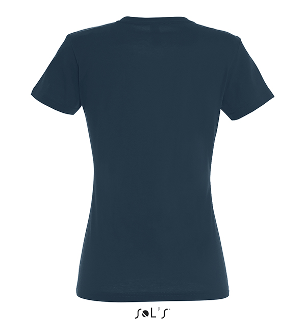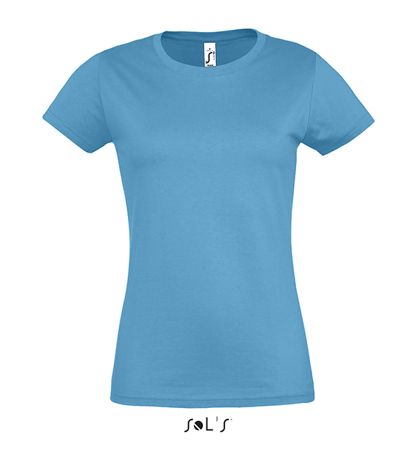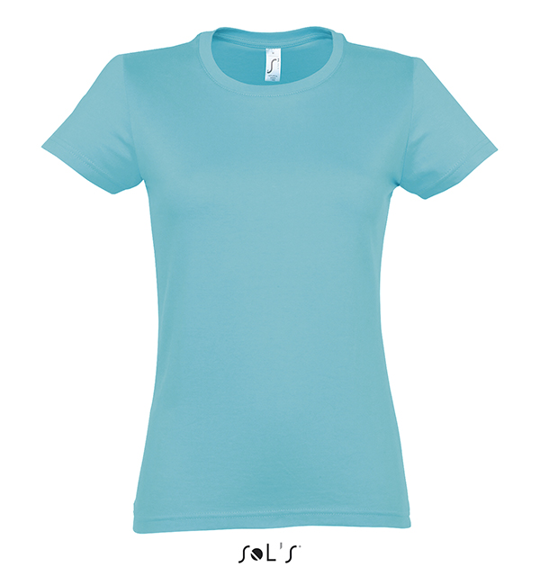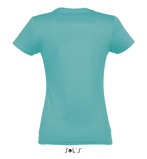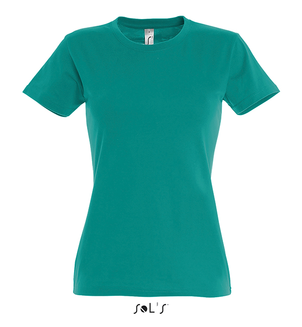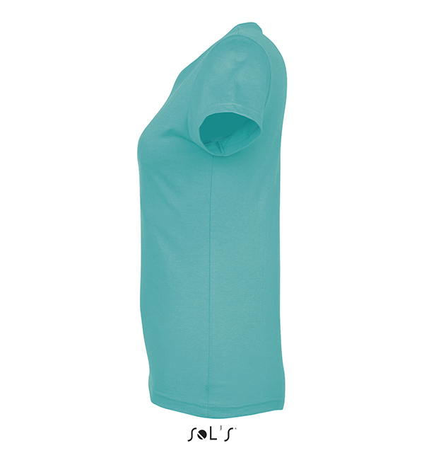 white orchid pink fuchsia red hibiscus sky blue atoll blue carribean blue ultramarine royal blue petroleum blue bottle green khaki emerald kelly green apple green ash gold lemon deep black navy french navy aqua grey melange mouse grey dark grey chocolate orange light purple dark purple denimSOL'S T-Shirt damski IMPERIAL WOMEN 190g