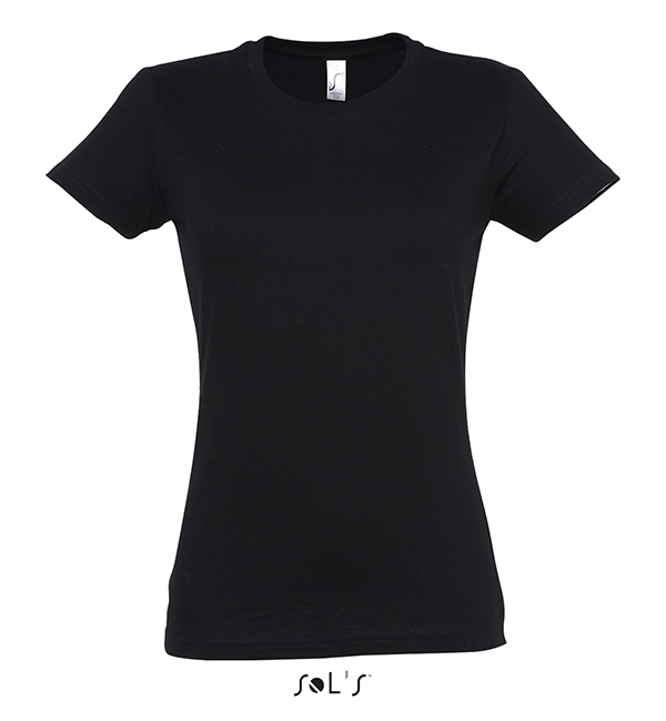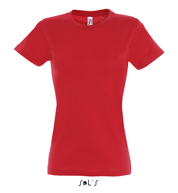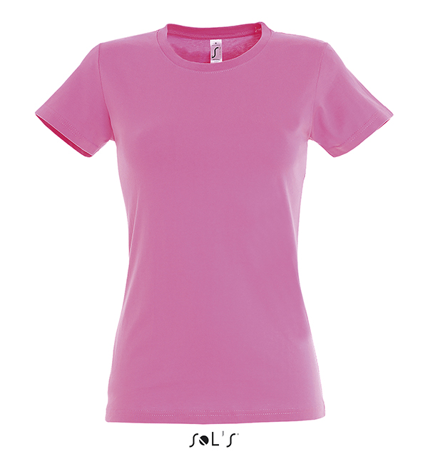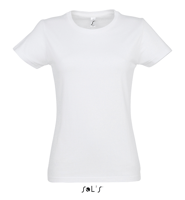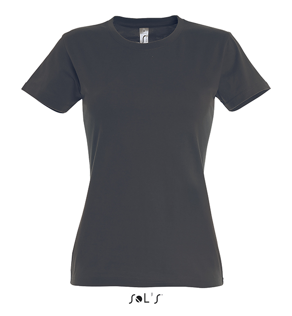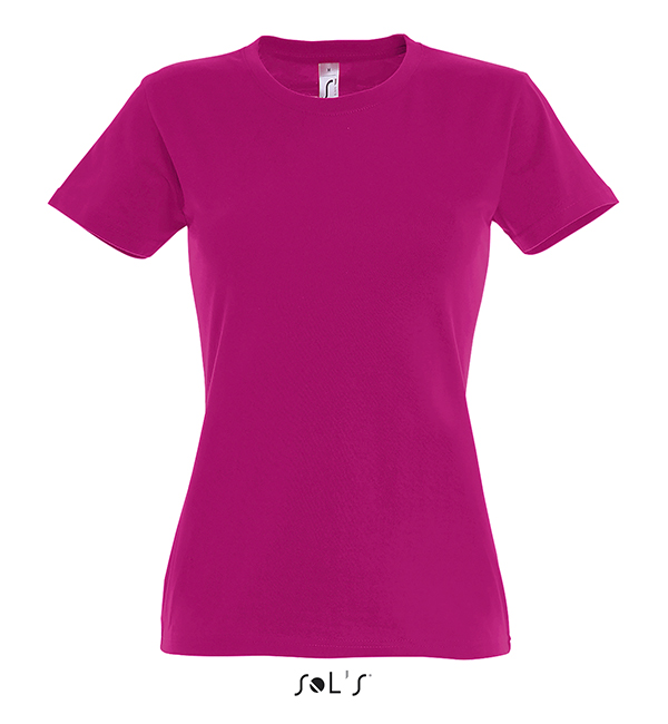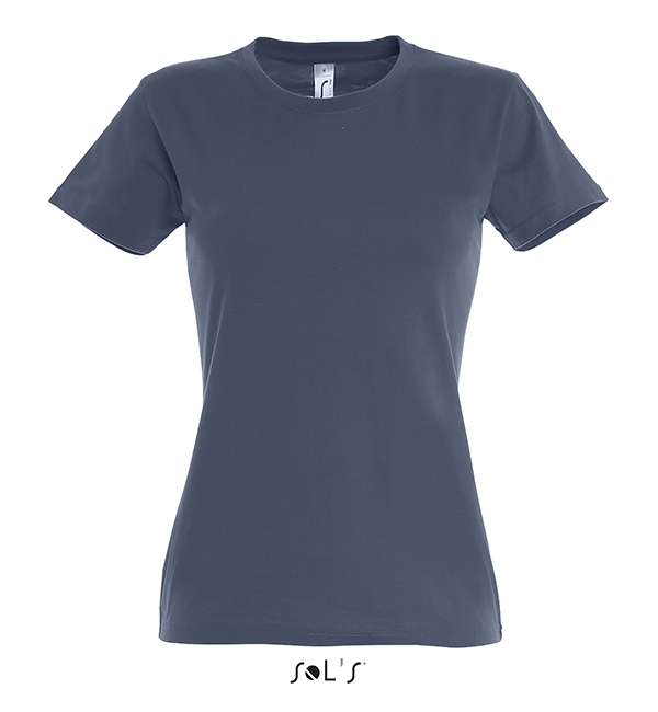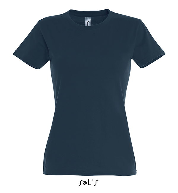 white orchid pink fuchsia red hibiscus sky blue atoll blue carribean blue ultramarine royal blue petroleum blue bottle green khaki emerald kelly green apple green ash gold lemon deep black navy french navy aqua grey melange mouse grey dark grey chocolate orange light purple dark purple denimSOL'S T-Shirt damski IMPERIAL WOMEN 190g