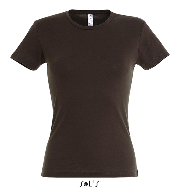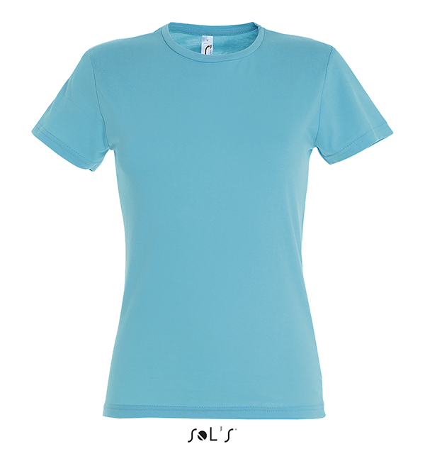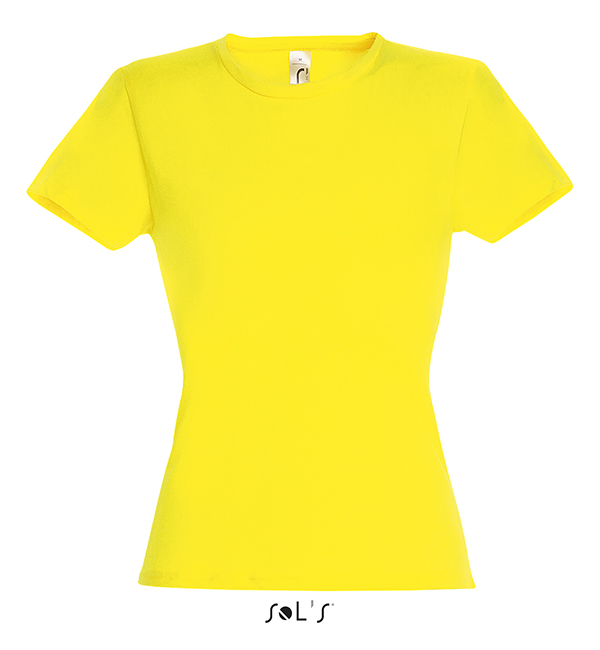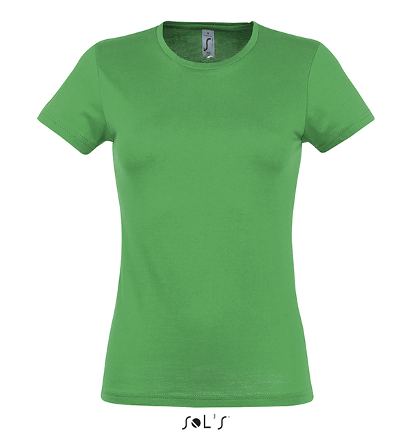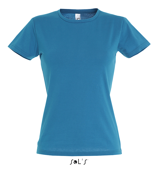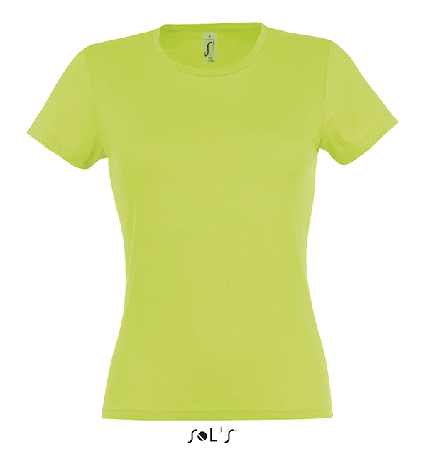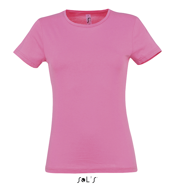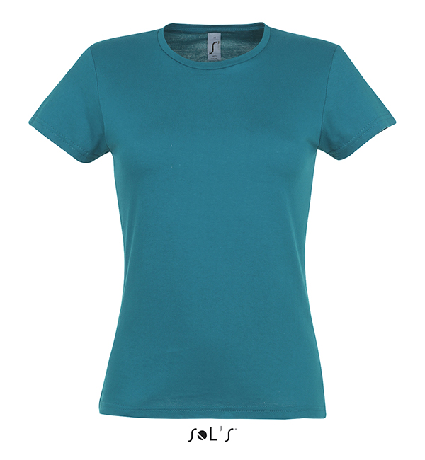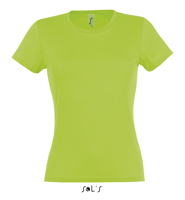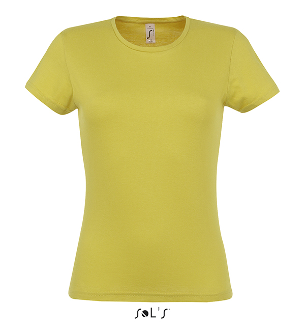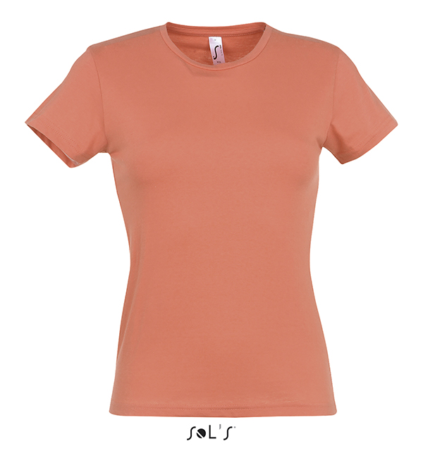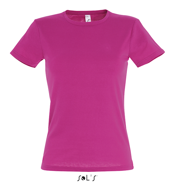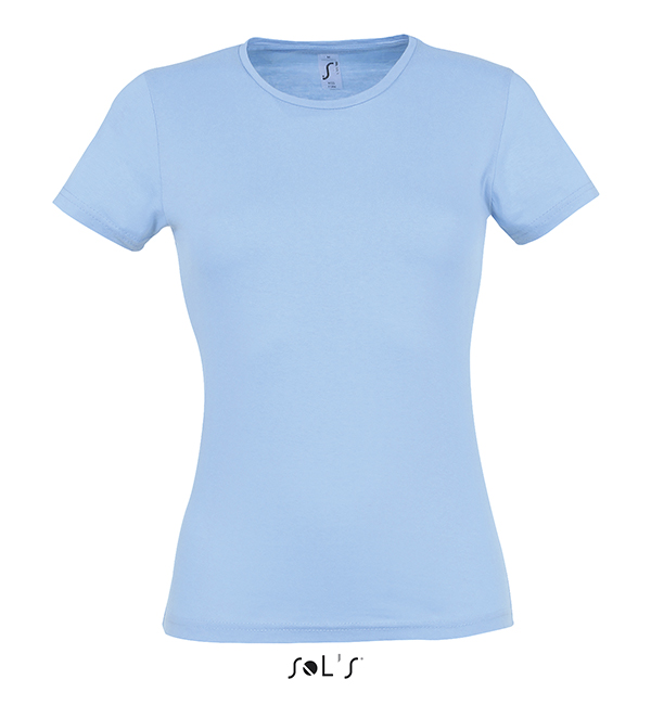 white orchid pink fuchsia red coral sky blue atoll blue duck blue royal blue khaki kelly green apple green lime gold lemon honey navy aqua grey melange dark grey deep black chocolate orange dark purpleSOL'S T-Shirt damski MISS 150g