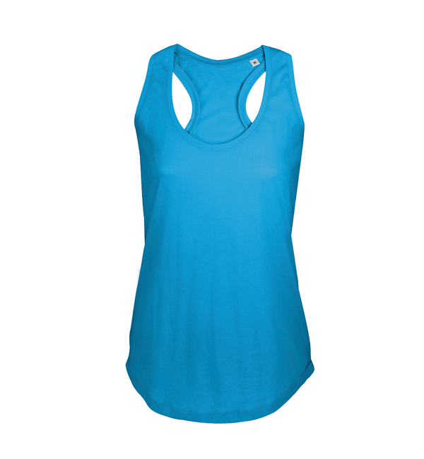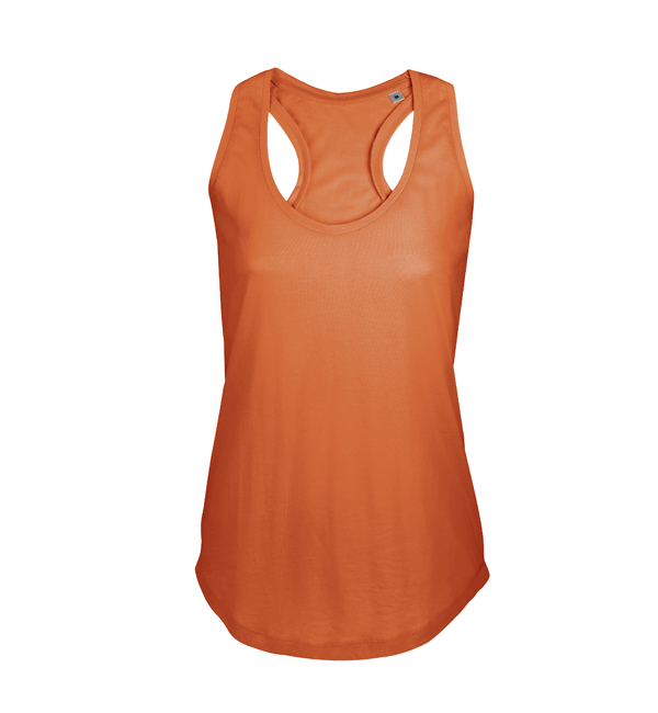 Modny damski krój, 100% bawełny, idealna pod nadruki. Wzmaniajaca taśma na karku, ściągacz z dodatkiem elastanu.