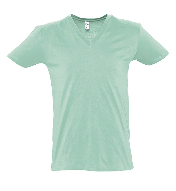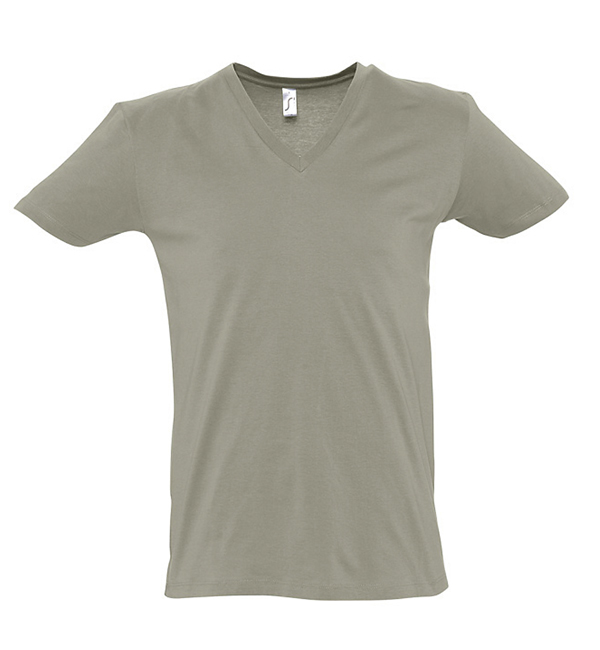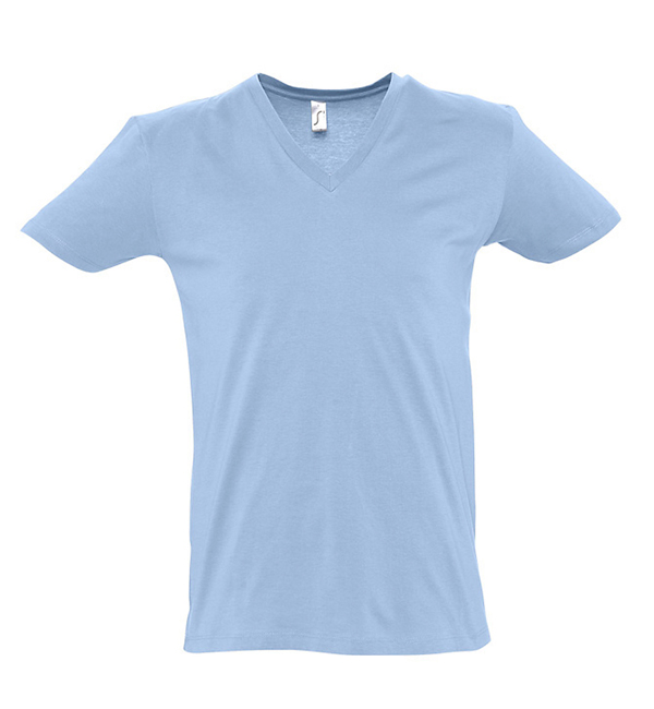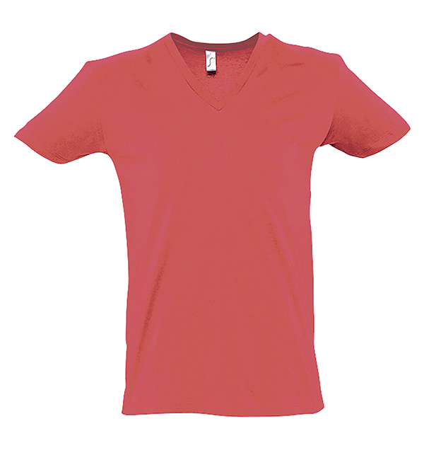 100% bawełny pół-czesanej, wzmacniająca taśma na karku. Modny styl, głęboki dekolt typu V-neck. Dobra jakość.