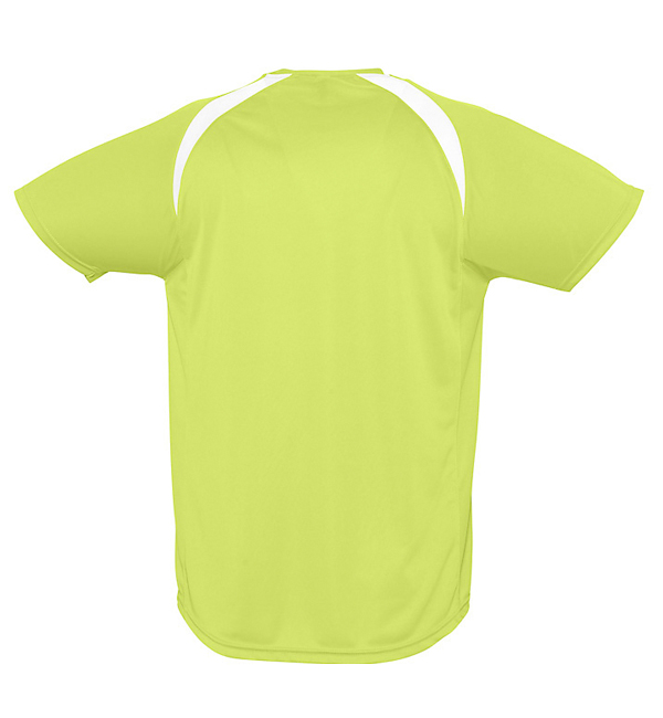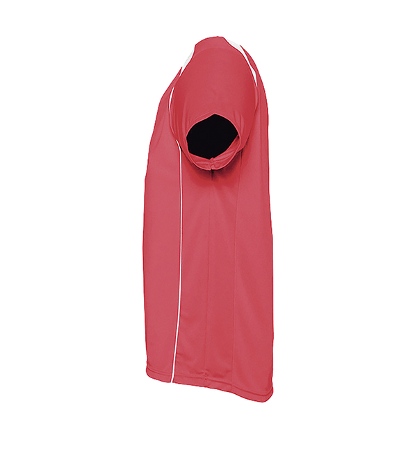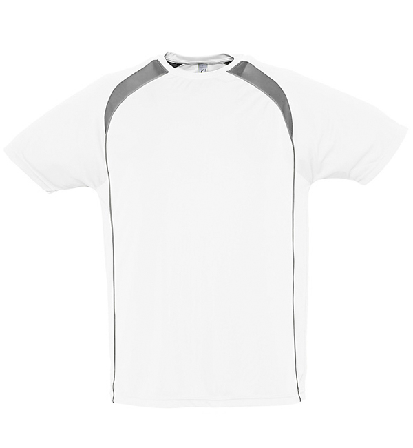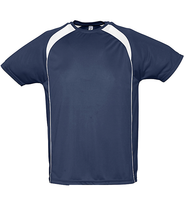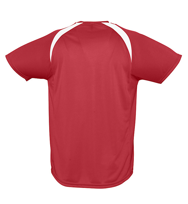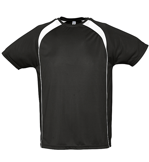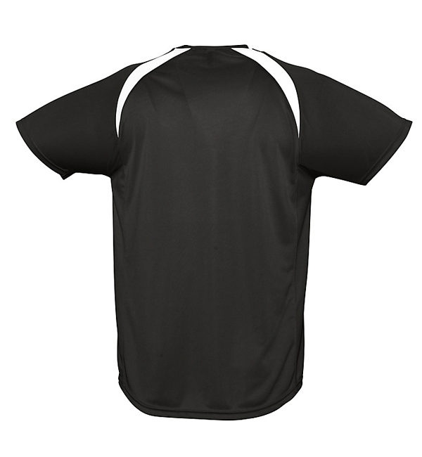 100% oddychającego poliestru. Sportowy i meodny styl. Kontrastowe rękawy typu raglan, lamówka wokół szyi.