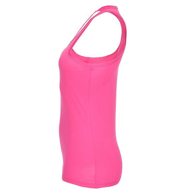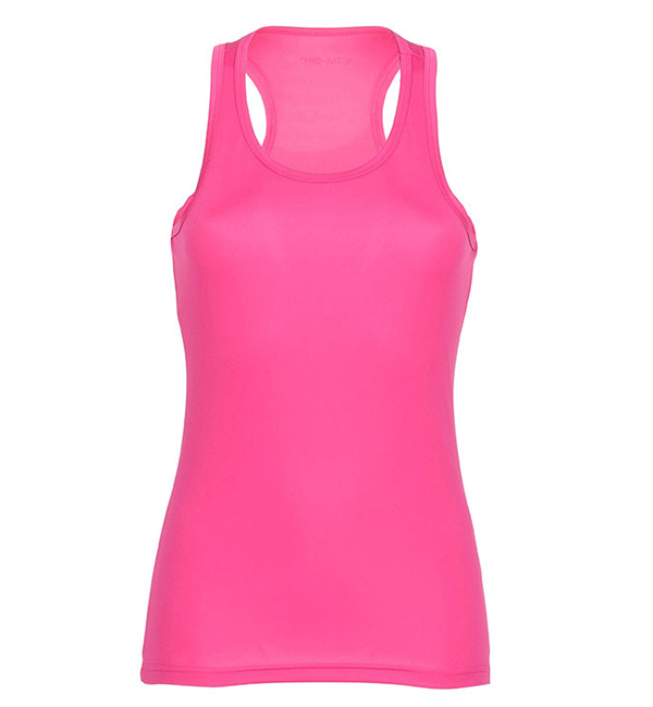 ramiączka zapewniające swobodę ruchu, gładka i lekka dzianina, dekolt i podkrój pach z lamówką, odblaskowe logo ACTIVE-DRY° na plecach, mała metka rozmiarowa na karku, etykietka z przepisem prania w szwie bocznym, szwy boczne