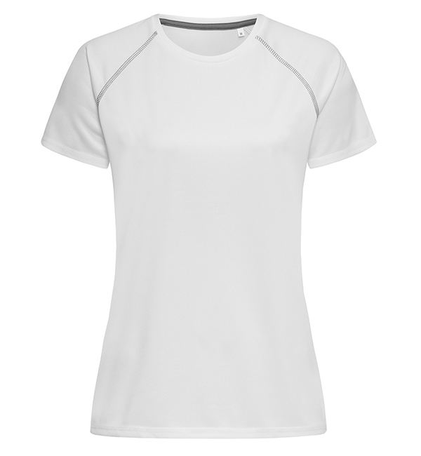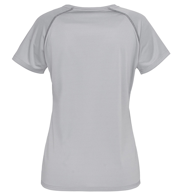 Komfortowo skrojony sportowy T-shirt dla kobiet z raglanowymi szwami w kolorze kontrastującym, wykonany z szybko schnącego i funkcjonalnego materiału, czyli oddychającej siateczki.