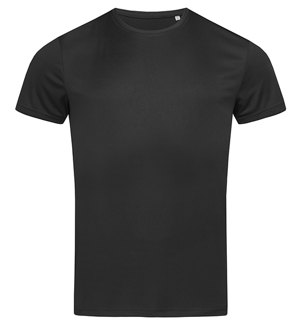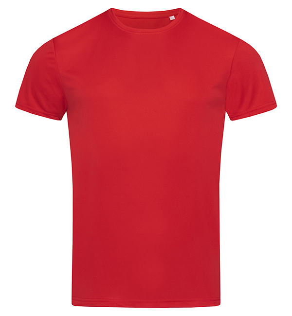 Męski T-Shirt Active Sports-T. Gładka i lekka dzianina 100% ACTIVE-DRY poliester, interlock, obszycie dekoltu z tej samej dzianiny, co cały model, dekoracyjne szwy na ramionach, odblaskowe logo ACTIVE-DRY° na plecach, mała metka na karku, etykietka z przepisem prania w szwie bocznym, Body Fit, szwy po bokach, maksymalna temperatura prania 40°C.