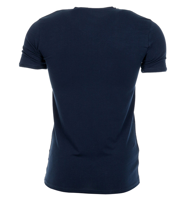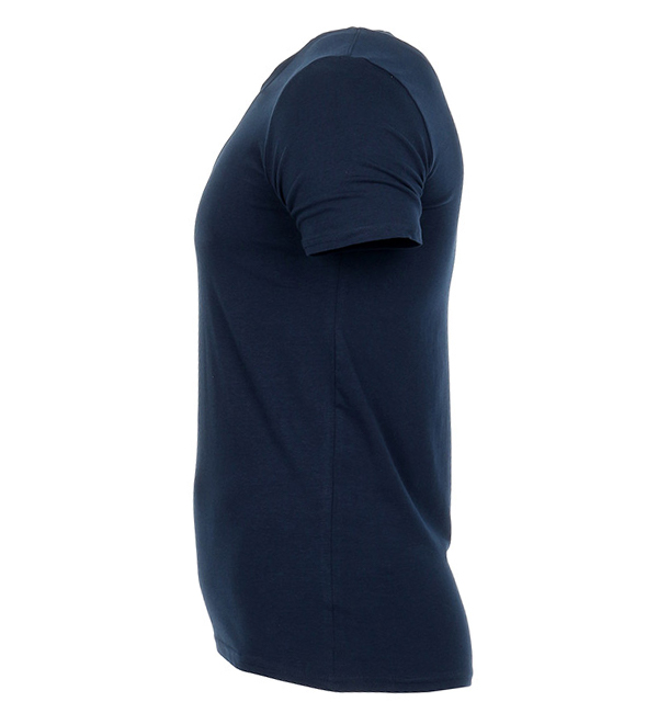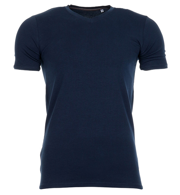 T-shirt męski V-neck z 95% bawełny czesanej ring-spun, 5% elastanu, single jersey. Kontrastująca taśma przy szyi, dekolt z wąskim ściągaczem, wąsko obrębione rękawy i wzmocniony szew na ramieniu. Mała metka na karku, etykietka z przepisem prania w szwie bocznym, Body Fit.Sszwy po bokach. Maksymalna temperatura prania 40°C.